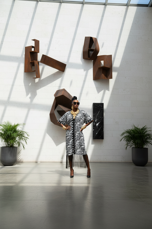 Mikado Aso Oke Patchwork Dress | V-Neck -